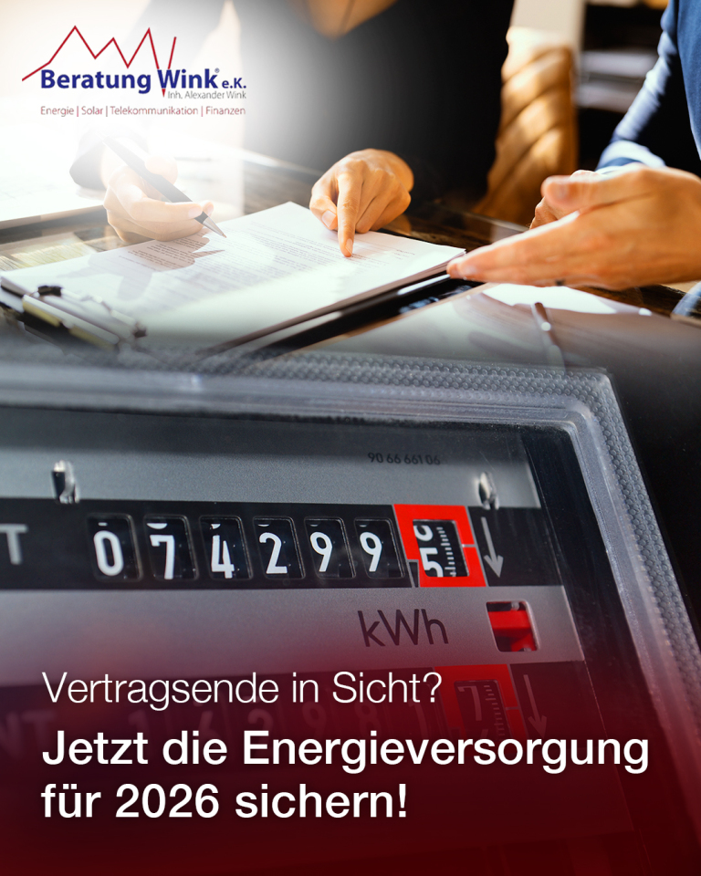 Wenn Ihre bestehenden Energieverträge zum Jahresende auslaufen, heißt es: rechtzeitig aktiv werden! Denn wer zu lange wartet, riskiert ungünstige Konditionen – oder landet sogar in der teuren Ersatzversorgung. Beratung Wink e.K. steht Ihnen dabei zuverlässig zur Seite – unabhängig, professionell und kostenfrei. Wir sorgen dafür, dass Sie weiterhin zu optimalen ...