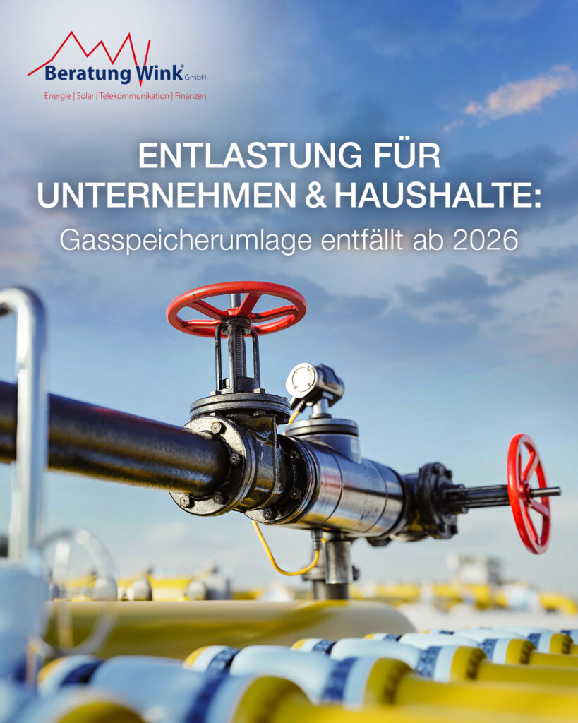 Gute Nachrichten für alle Gasverbraucher: Ab dem 1. Januar 2026 entfällt die Gasspeicherumlage vollständig. Das bedeutet eine jährliche Entlastung von rund 3,4 Milliarden Euro für Verbraucherinnen, Verbraucher und Unternehmen.