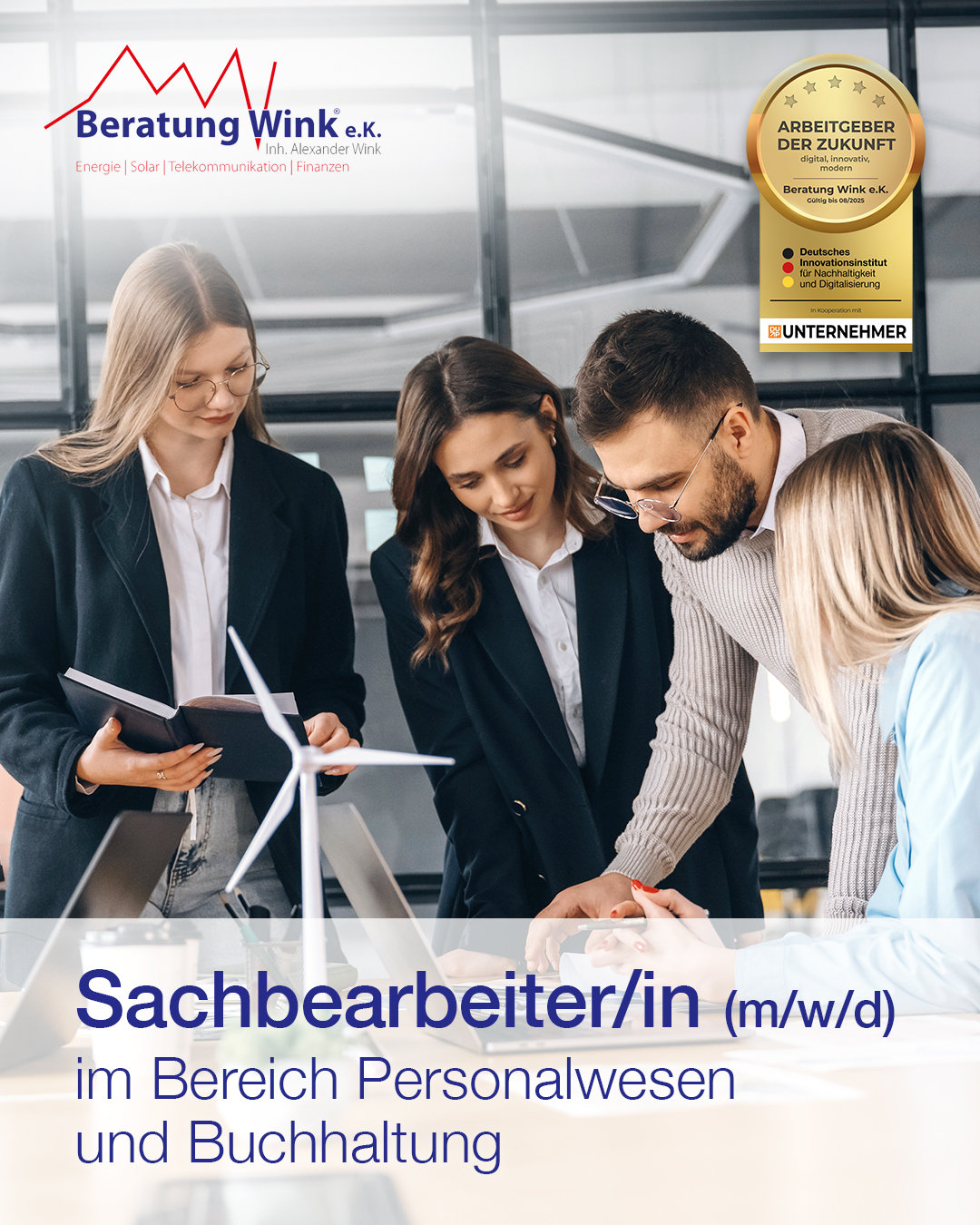 Die Beratung Wink e.K. ist eine Unternehmensberatung mit dem Schwerpunkt Energie-Einkauf (Lieferverträge für Strom, Gas und Fernwärme) für Handel, Industrie und Wohnungswirtschaft. Als einer der Qualitätsführer in unserer Branche wurden wir bereits vielfach ausgezeichnet. Unter anderem zuletzt als Arbeitgeber der Zukunft. Die Energiewirtschaft ist ständig in Bewegung und wir sind es auch.