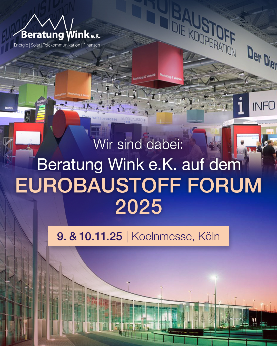 Am 9. und 10. November 2025 ist es wieder soweit: Das EUROBAUSTOFF Forum öffnet seine Tore in der Koelnmesse – und wir von der Beratung Wink e.K. sind selbstverständlich mit dabei!